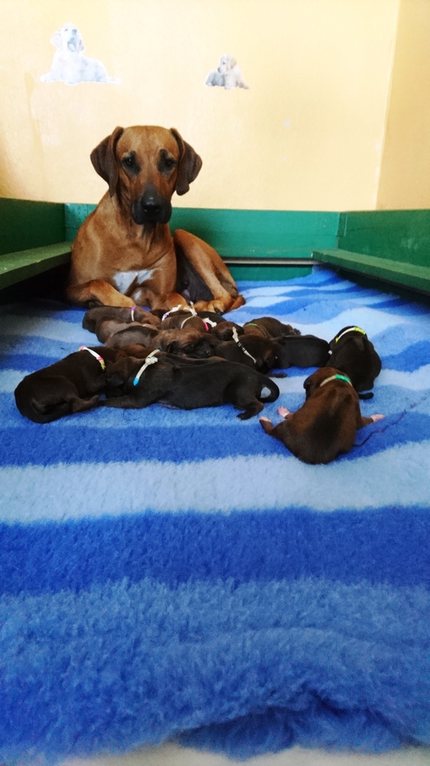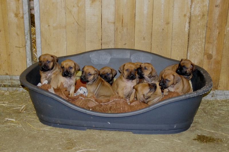 Am 11.06.2016 kamen unsere süßen 10 Ridgeträger zur Welt. Mama ist unsere starke Hündin Aminata vom Adelshof und als Papa haben wir wieder Fabayo gewählt, der uns nicht nur persönlich in seinen Bann gezogen hat, sondern auch als Papa unseres B-Wurfes völlig überzeugt hat. Gleichmässig starke Welpen mit bestem Interieur- das wollten wir auch im C-Wurf erreichen. Dazu kommt noch der schöne Farbton beider Elterntiere, der auch bei den Welpen bereits erkennbar ist. Unsere Wurfkiste wird von den Familienmitgliedern oft besucht und sowohl die Mama, als auch die Welpen sind sehr entspannt. Einzelbilder der Welpen sind in der Galerie ( linke Seite) zu sehen und werden regelmäßig erneuert.