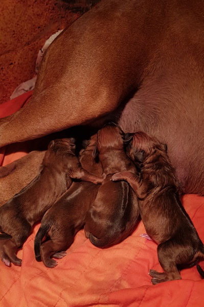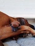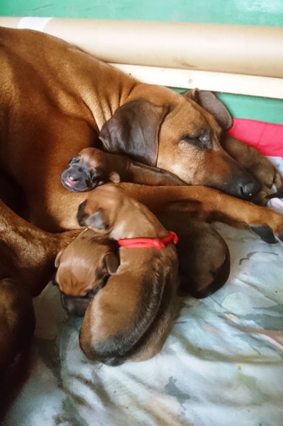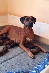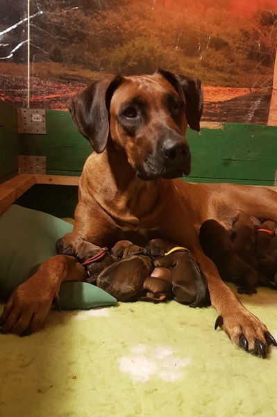 Am 31.05.2019 sind "Chipo vom Marienkaeferberg" und "Demba Maua Ya Sambesi" ( www.beverly-bornitz.com ) Eltern von gesunden, wunderschönen Ridgeträgern geworden. Wir haben uns für die Verpaarung diesmal einen sehr schönen und korrekten Livernoserüden ausgesucht, weil neben der schönen Farbe, wir vor allem am einwandfreien und sensiblen Charakter großes Interesse für die Zucht haben. Sicher werden unsere Erwartungen nicht enttäuscht und es werden rassetypische kleine Entdecker bald herumwuseln und neben unseren Herzen, auch das der zukünftigen Familien erobern..